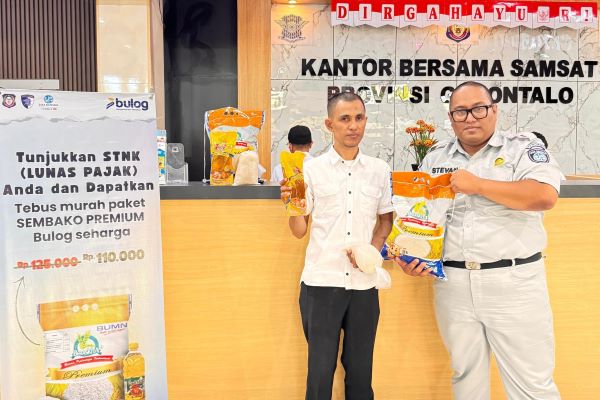 Sementara itu, Perum Bulog Cabang Gorontalo juga menjadi bagian dari sinergi ini dengan memberikan paket sembako harga khusus bagi wajib pajak yang telah melunasi pajak kendaraannya. Hingga saat ini sudah total 150 voucher paket sembako yang telah digunakan oleh wajib pajak di Gorontalo.