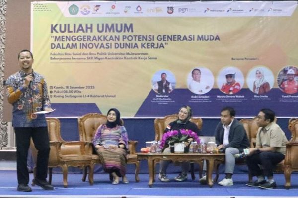 SAMARINDA - Fakultas Ilmu Sosial dan Ilmu Politik (FISIP) Universitas Mulawarman bersama SKK Migas menggelar kuliah umum bertema "Menggerakkan Potensi Generasi Muda dalam Inovasi Dunia Kerja" pada Kamis (18/9/2025).